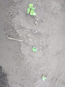 1昨日。「大根、芽が出ました。でも、周りに大きなバッタが飛び回ってますよ。」メロンさんからライン。