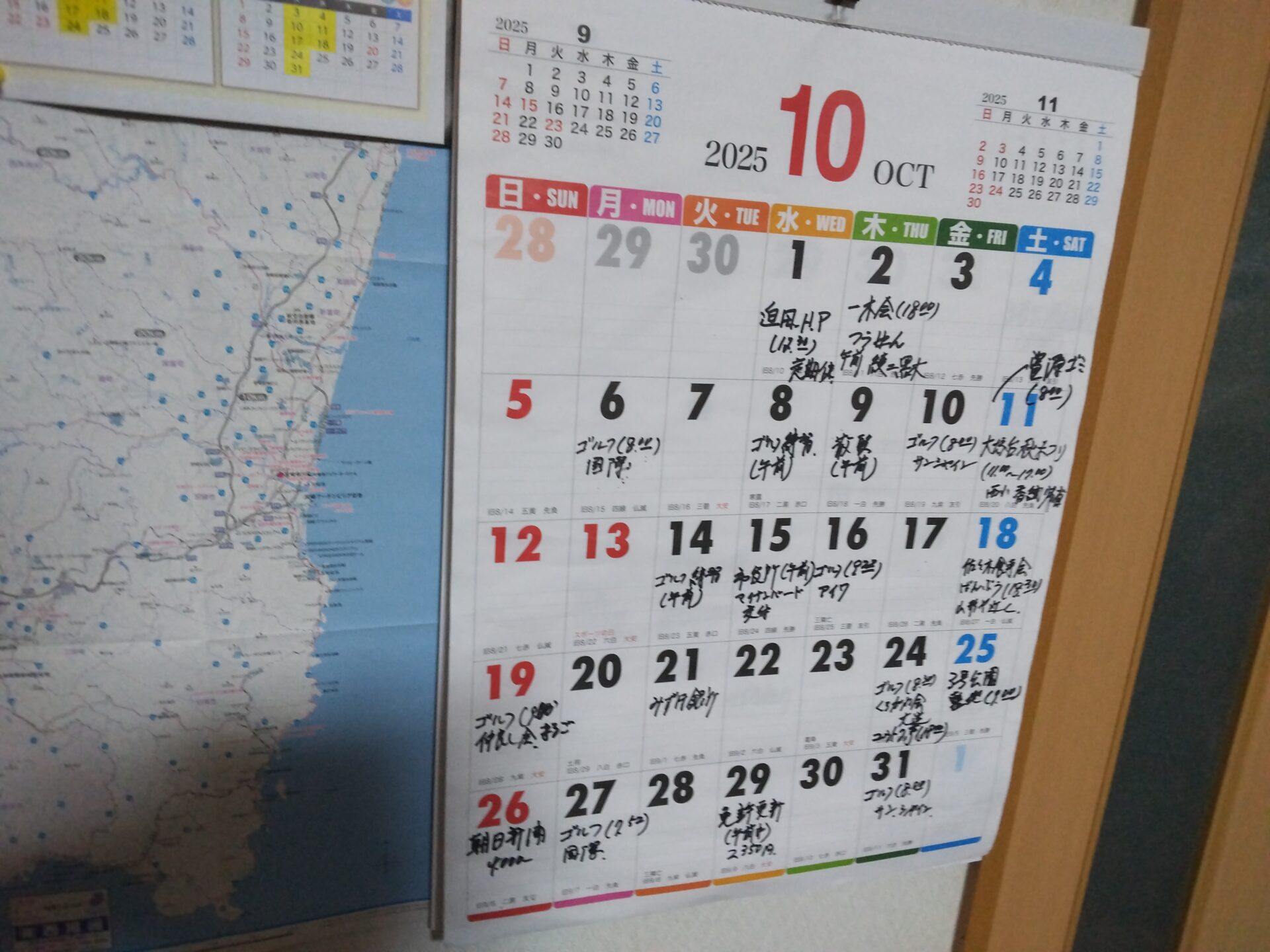 予定がビッシリ書き込まれ、ゴルフが7回も。