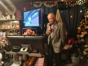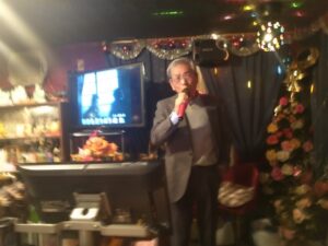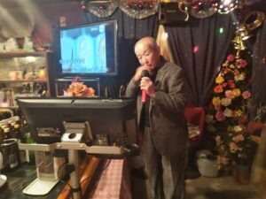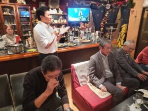 昨夜、89歳のお祝い会。大塚町のカラオケスナック。16人が集まった。