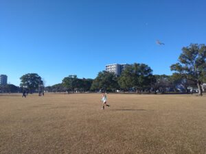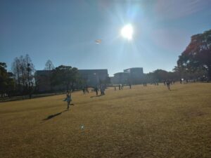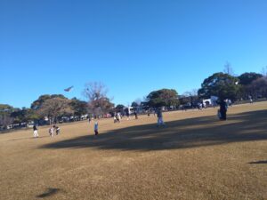 公園。幼稚園の凧揚げ会をやってた。