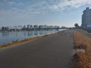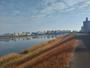市役所裏を抜け、再び堤防へ。
