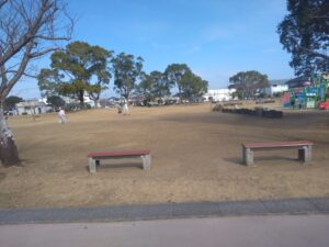 花山手公園にゴール。汗がでた。