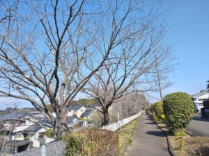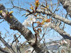 遊歩道沿いの桜。ちらほら咲き始めていた。