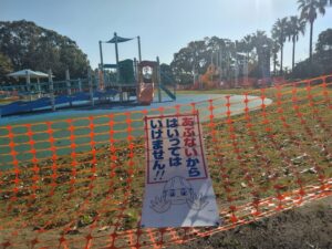 暗。閉鎖されたまま放置されてる児童遊園。