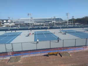 明。国際基準を備え、新たに整備されたテニスコート、