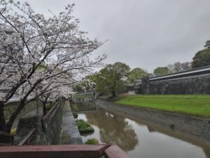 堀の桜は満開。